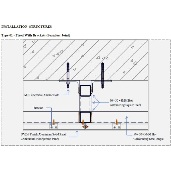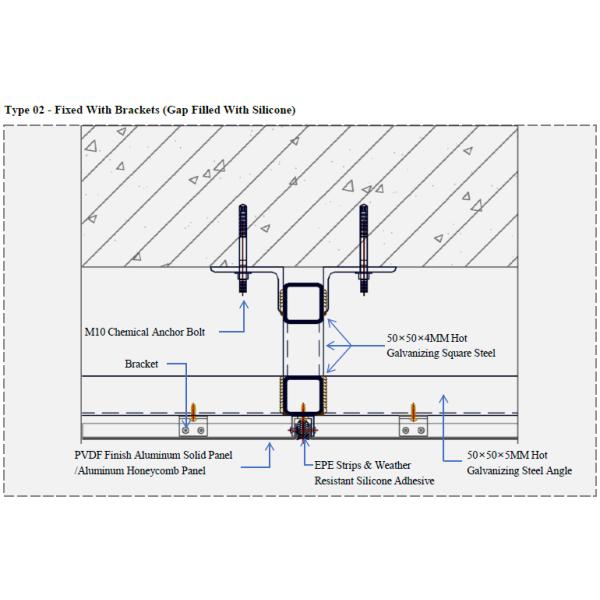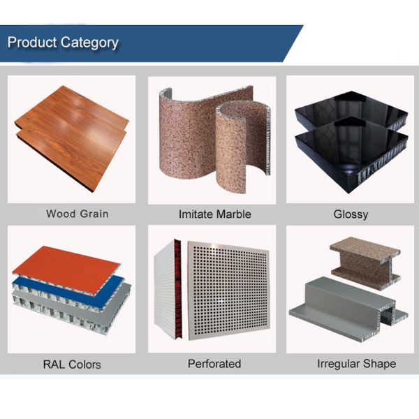 | Aluminum Honeycomb Panel | Aluminum alloy | Standard thickness:10, 12, 15, 18, 20, 25mm; Custom made available | Fluorine carbon coated | Standard width:1220, 1250, 1500mm Length≤6000mm Width≤1500mm | Black / Stone, subject to user demand |